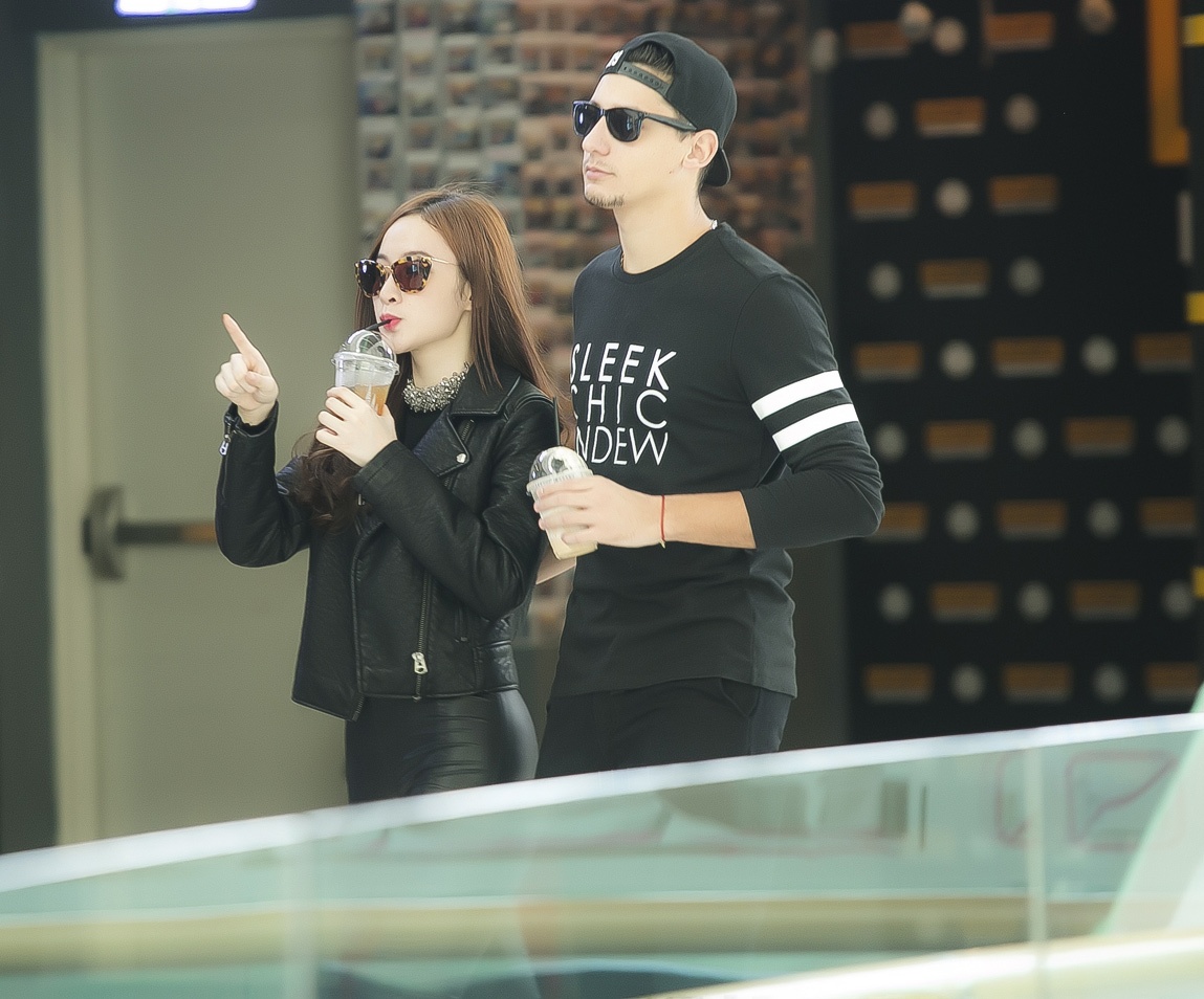 | Chiều 20/1, nữ diễn viên Mùi ngò gai bị bắt gặp đi chơi cùng bạn nhảy Kris tại cuộc thi Bước nhảy hoàn vũ. Cả hai đều diện trang phục tông xuyệt tông màu đen, khoác tay nhau vui vẻ đi trên phố. |