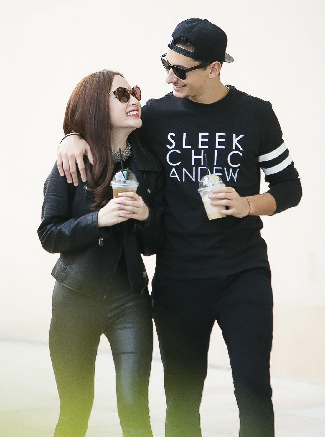 | Angela Phương Trinh được nam vũ công điển trai lúc khoác vai, lúc ôm eo khi đi trên phố. Cô cho biết, Kris chỉ hơn cô một tuổi nên cả hai dễ dàng nói chuyện thoải mái như những người bạn đồng trang lứa. |