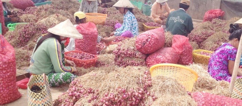 | Giá hành tím giảm hơn một nửa so với 2 tháng trước nên nông dân không thu được lãi nhiều hoặc chỉ huề vốn. |