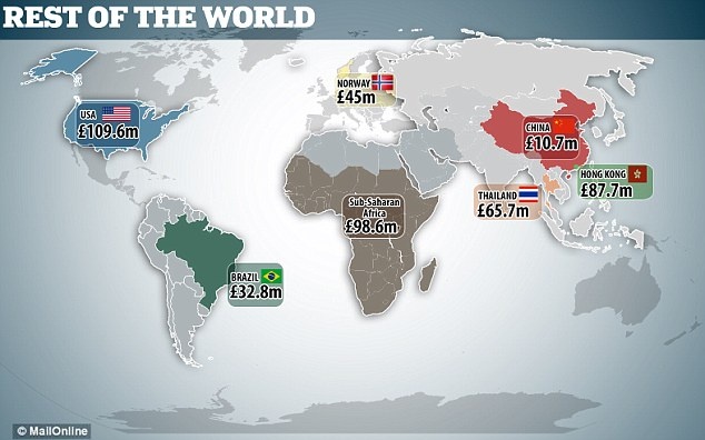 | Những khu vực mua bản quyền truyền hình Ngoại hạng Anh. Đồ họa: Daily Mail. |