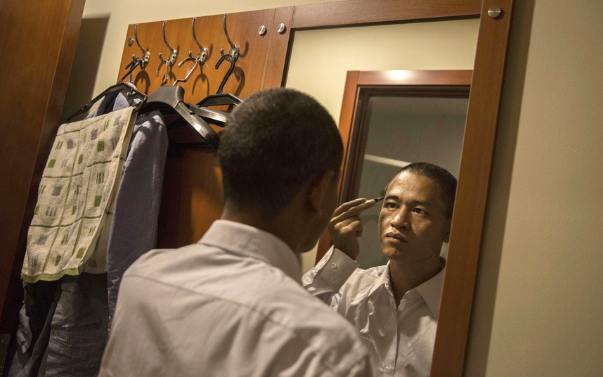 | Trước khi nổi tiếng và kiếm tiền nhờ diện mạo giống Obama, Xiao mưu sinh bằng công việc bảo vệ nhà máy trong suốt 10 năm. Bản sao của tổng thống Mỹ chỉ có thể nói được vài từ tiếng Anh. |
