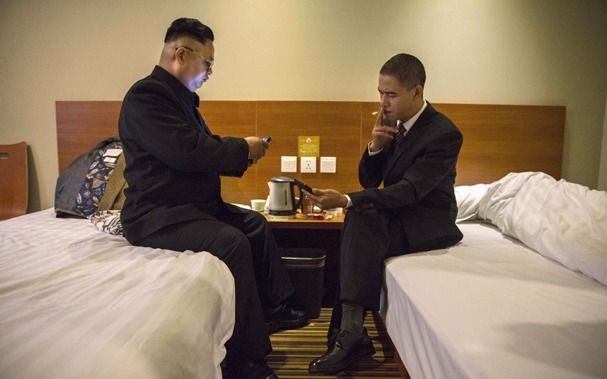 | Jia Yong Tang vào vai lãnh đạo Kim Jong Un và Xiao Ji Guo vào vai Tổng thống Obama. |