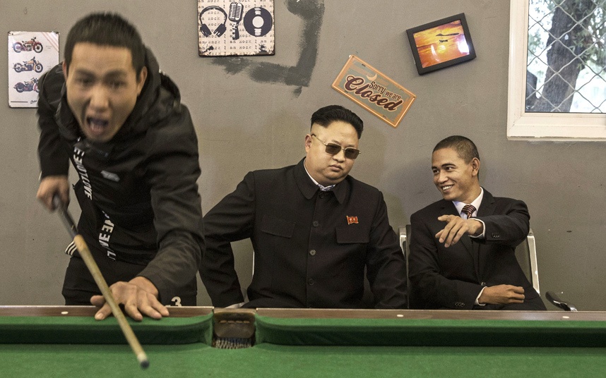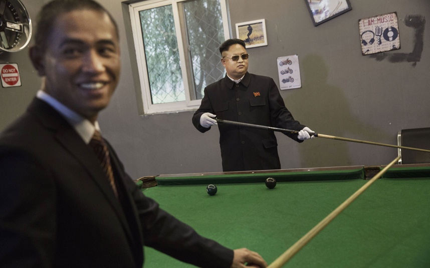 | Bản sao của Kim Jong Un và Obama cùng chơi bi-a. |