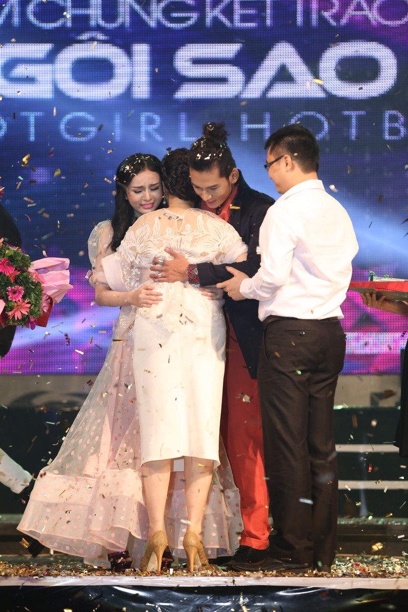 | Giải nhất Quan Lý Bình và Angela Minh Châu rơi nước mắt hạnh phúc khi được xướng tên. |