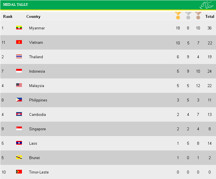 Như vậy, tính đến 12h30 hôm nay, Đoàn TTVN đã có 10 HCV, 5 HCB, 7 HCĐ, xếp thứ 2 trên bảng tổng sắp.