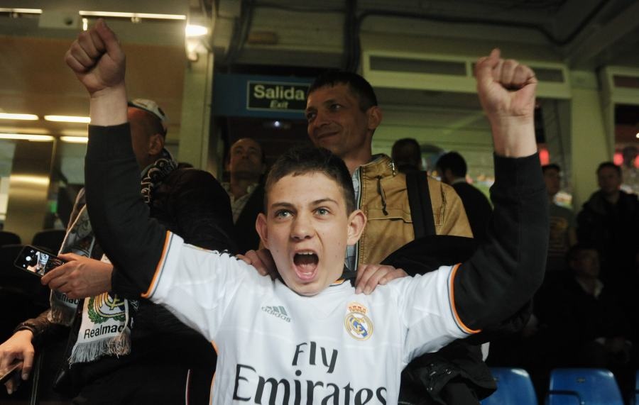 | David dự khán trận Real tiếp Dortmund tại Champions League. Ở trận này, Ronaldo - thần tượng của cậu bé đã ghi bàn. |