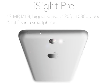 Trong bản thiết kế của Arthur Reis cùng Ran Avni, camera của sản phẩm đã có cảm biến lớn hơn tới 20%, ống kính khẩu độ f/1.8 và độ phân giải 12MP. Với những thông số trên, ta có thể mường tượng tới một sản phẩm iPhone với khả năng chụp ảnh thiếu sáng tuyệt vời. Màn hình 4,4 inch độ phân giải 1.080 x 1.920 pixel cho chất lượng hình ảnh nét như iPad nhưng nhỏ như iPhone. Tất nhiên, sản phẩm này sẽ mỏng hơn, nhẹ hơn và mạnh mẽ hơn iPhone 5S.