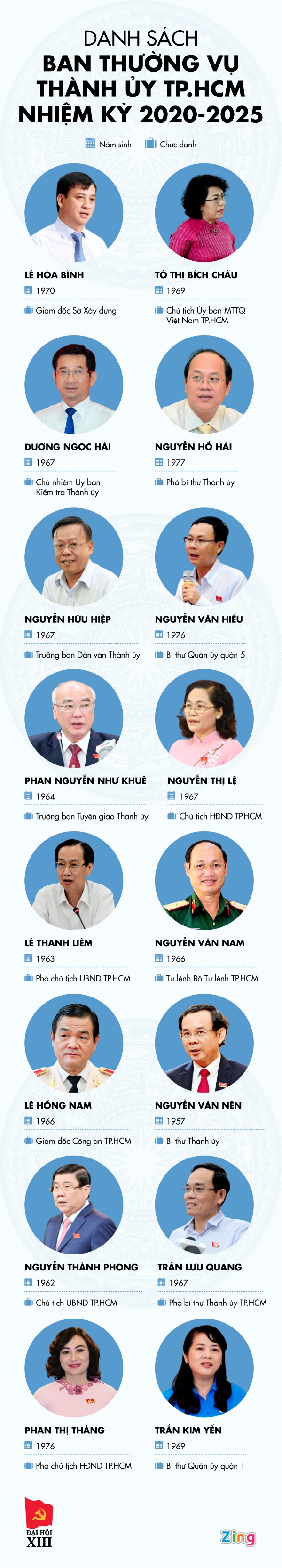 Ban Thường vụ Thành ủy TP.HCM khóa XI, nhiệm kỳ 2020-2025, gồm 16 người. Trong số đó, 4 người thuộc thế hệ 7X.