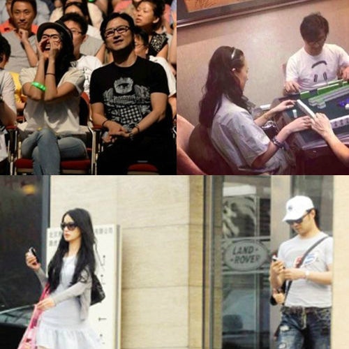 Chương Tử Di và Uông Phong cùng xem ca nhạc (trái), chơi mạt chược (phải) và tại Bắc Kinh. |