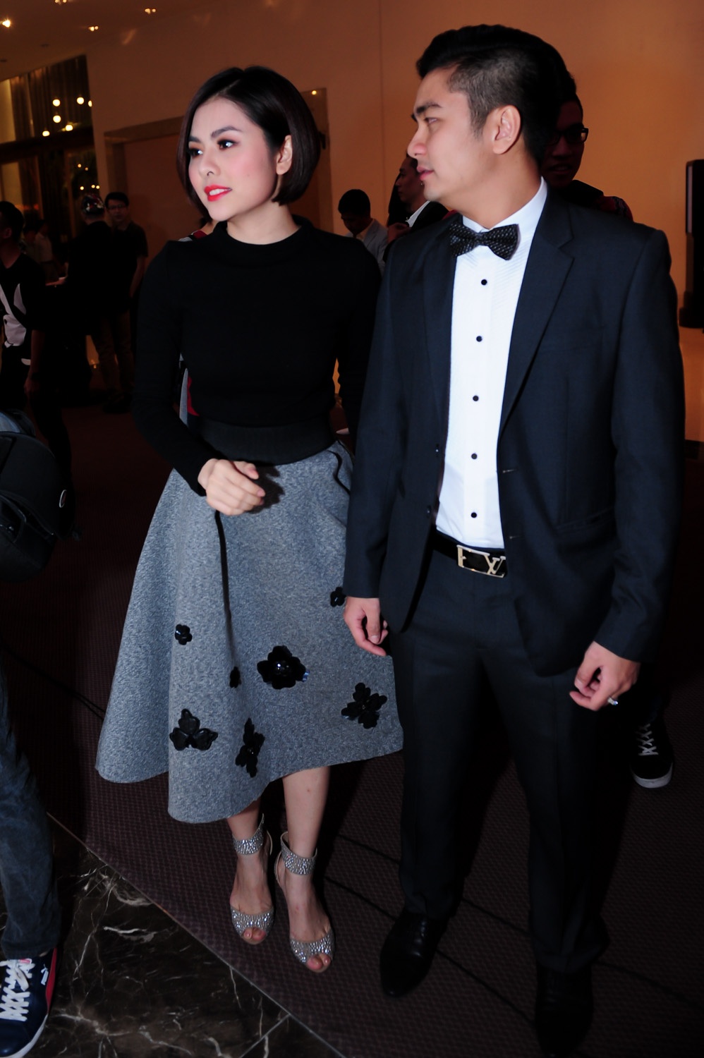 | So với những lần xuất hiện trước, lần này, bạn trai của Vân Trang mạnh dạn hơn khi được cánh truyền thông chụp ảnh. |
