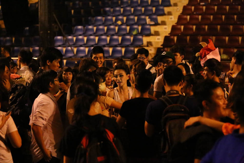 | Việc Thu Thủy trở thành quán quân khiến các fan của cô vô cùng bất ngờ. Đêm thi vừa kết thúc, họ đã tràn xuống sân khấu để chúc mừng nữ ca sĩ. |