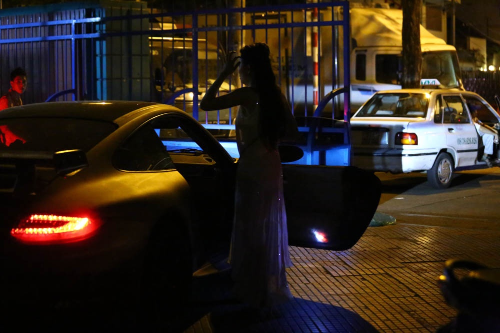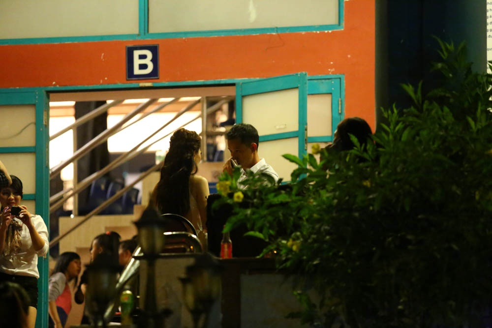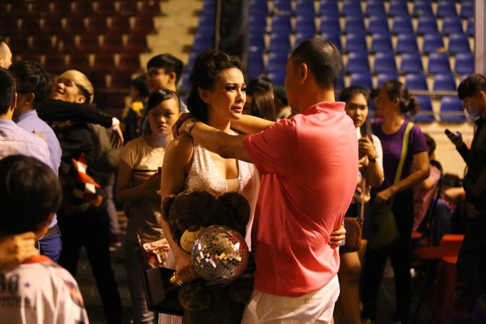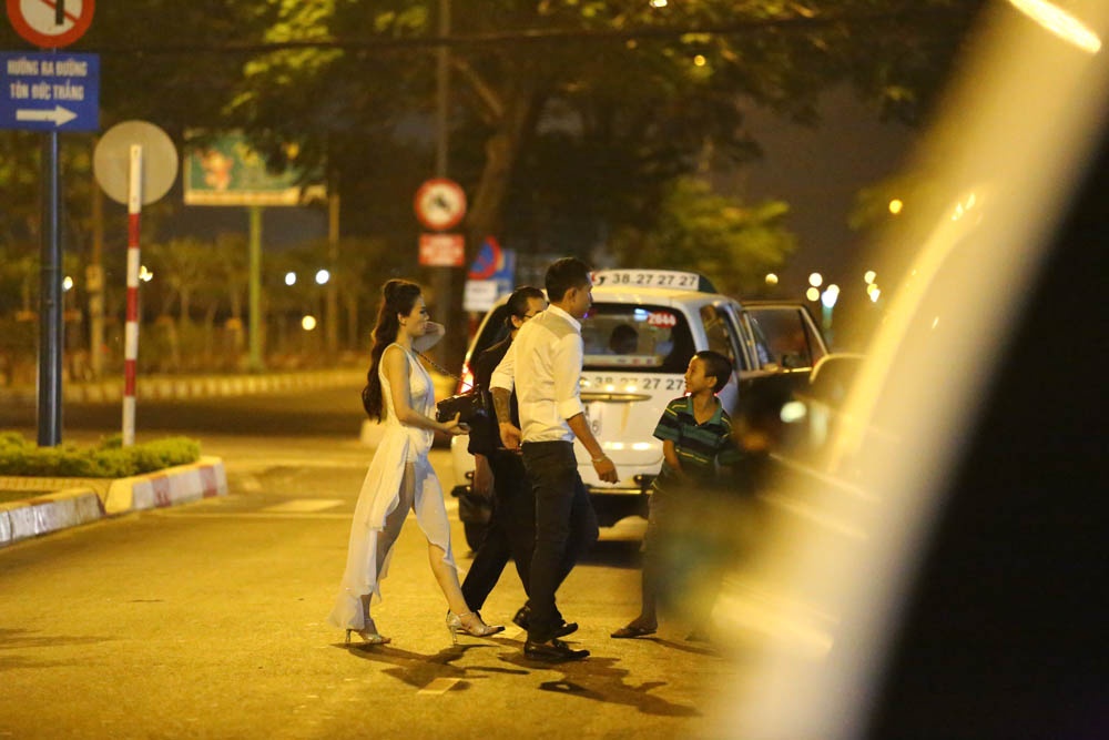 | Hơn 1h sáng, Thu Thủy và bạn trai mới chuẩn bị rời nhà thi đấu Nguyễn Du để ra về. |