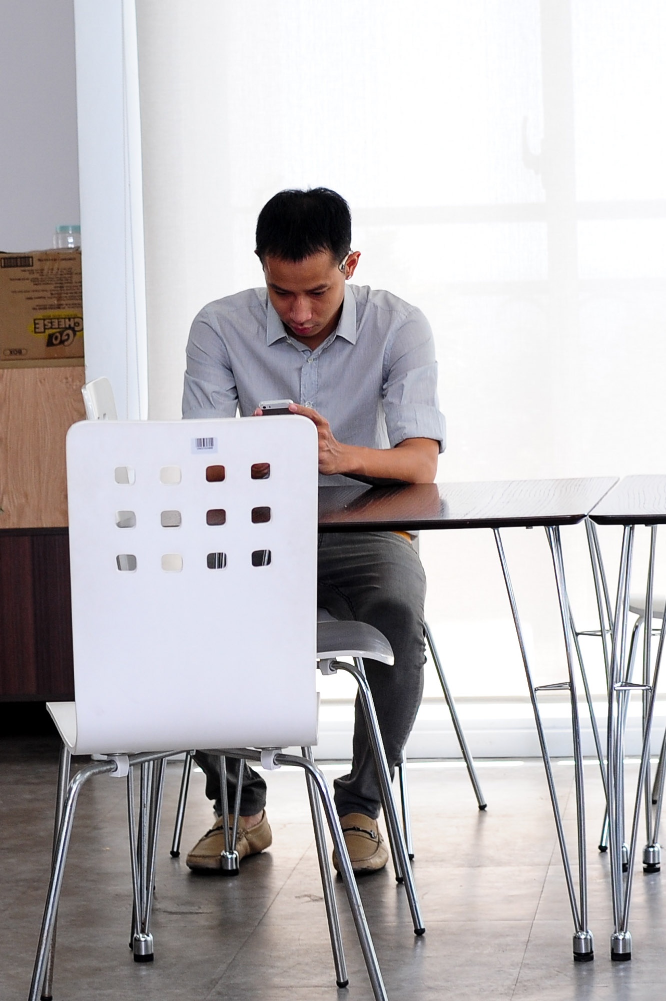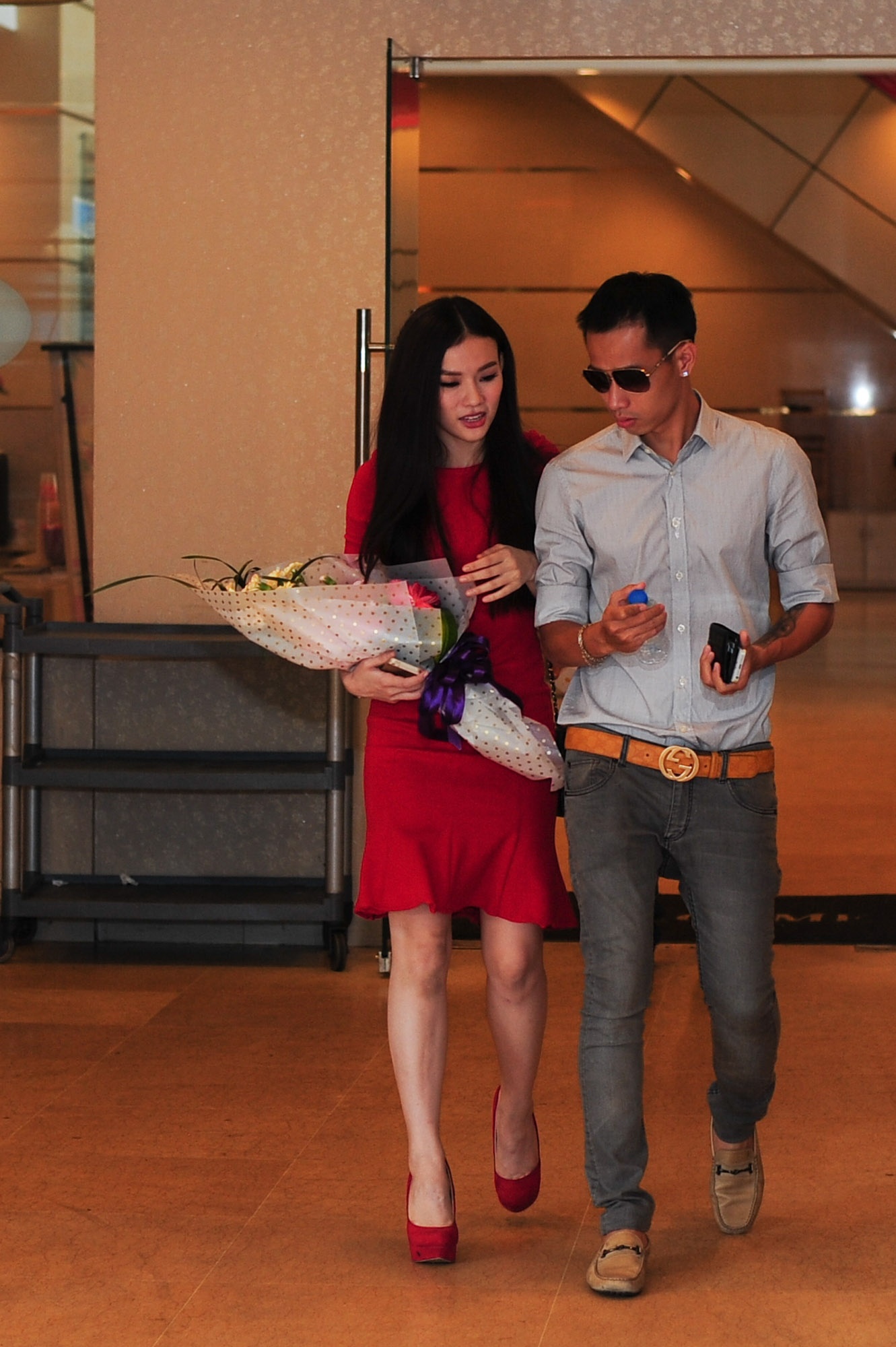 | Trong khi đó, bạn trai của nữ ca sĩ chọn một góc vắng để ngồi chờ Thu Thủy. Quán quân BNHV từng bật mí, dù đã yêu nhau hơn 12 năm nhưng bạn trai vẫn chưa thực sự quen với công việc của cô. Anh không thích bị mọi người chú ý. |