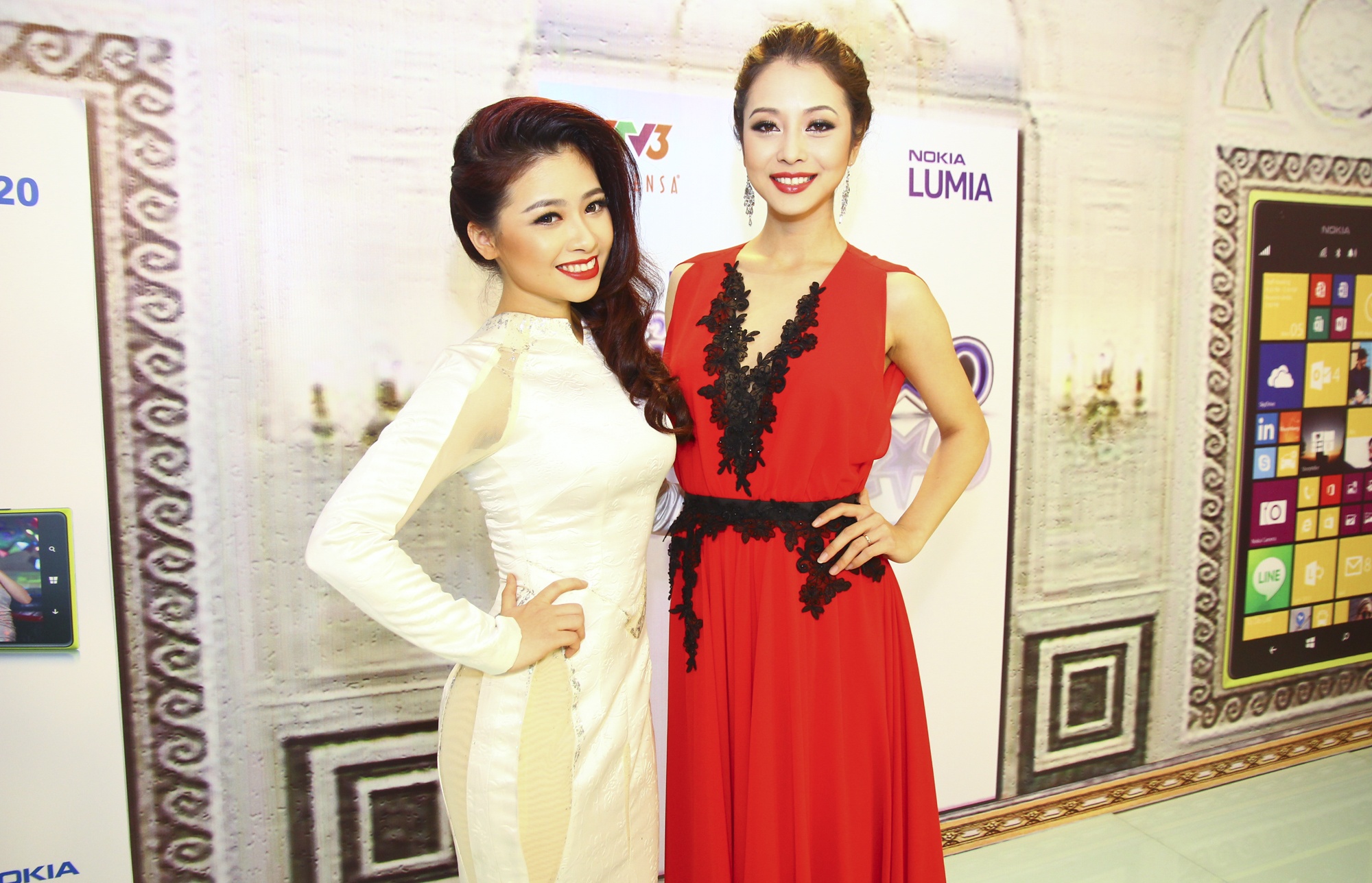 | Dương Hoàng Yến khoe sắc bên MC của chương trình - Jennifer Phạm. |