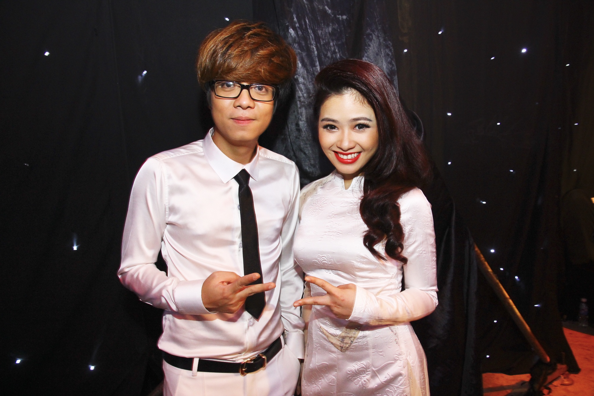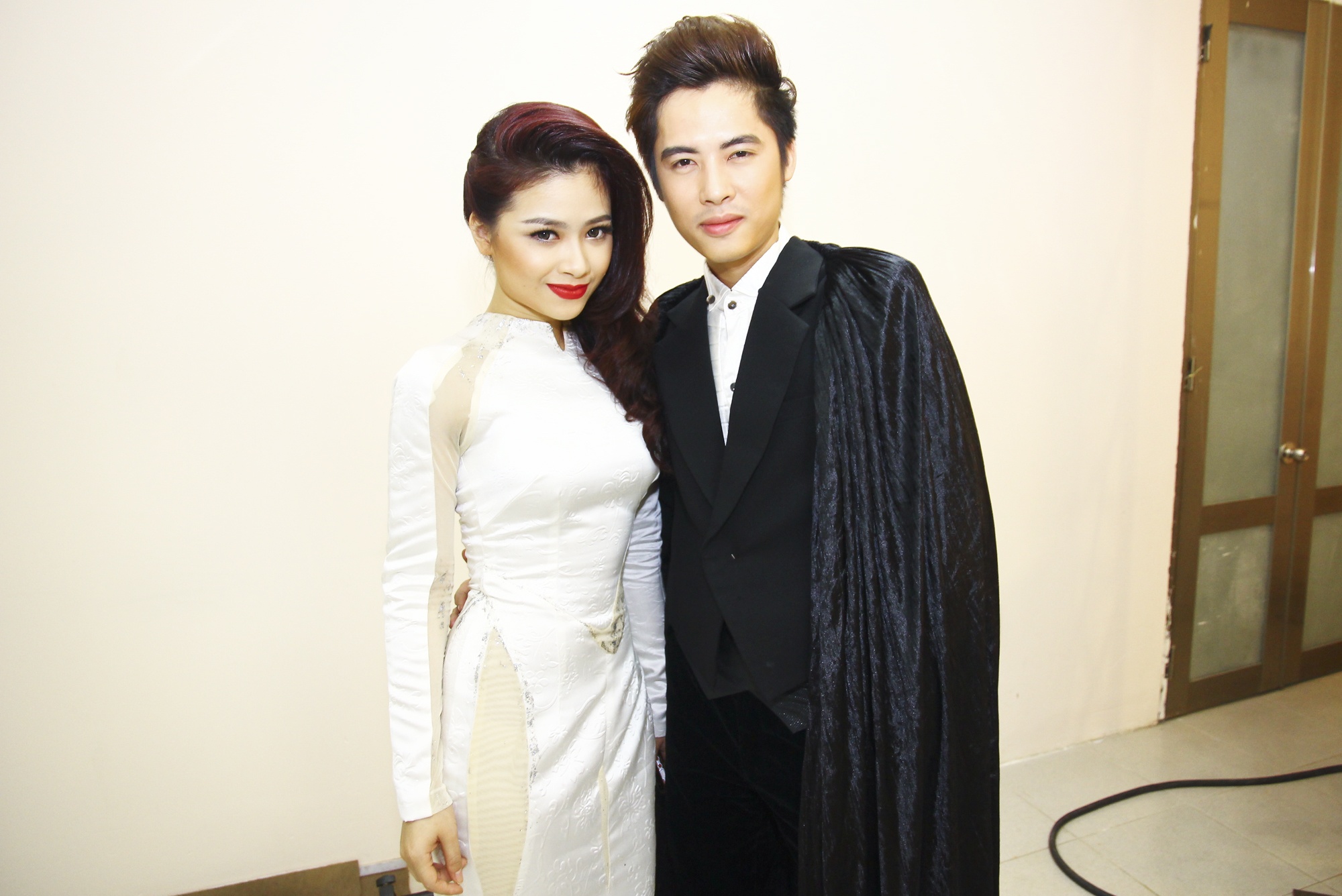 | Dương Hoàng Yến nhí nhảnh bên Bùi Anh Tuấn. Sau đêm thi tối 16/2, nam ca sĩ và Ngọc Khuê là hai thí sinh đầu tiên bị loại khỏi cuộc chơi. |