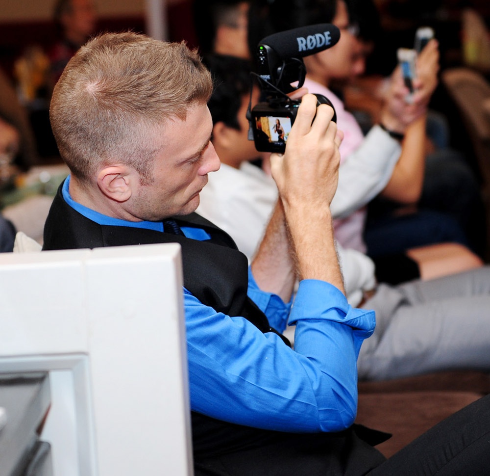 Tham gia biểu diễn trong một sự kiện diễn ra ngày 7/11, tại TP.HCM, bạn trai ngoại quốc của quán quân Vietnam Idol 2007 mang theo cả máy quay để ghi hình cô.