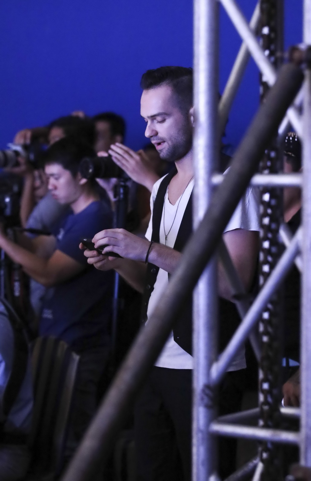 Trong sự kiện thời trang tối 18/9 vừa rồi, anh chàng Tây điển trai cũng có mặt trên hàng ghế khán giả.