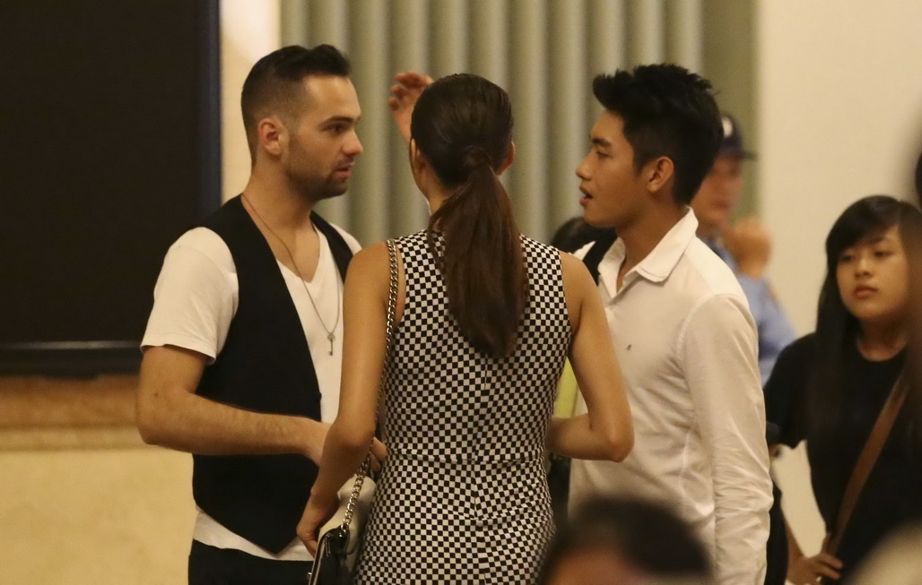 Tới khi Ngọc Quyên sải bước trên sàn catwalk, Daniel đã di chuyển tới sát phía sàn catwalk để theo dõi các bước đi của bạn gái tin đồn.