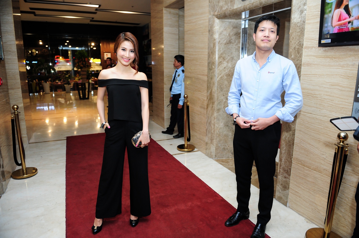 | Xuất hiện ở buổi tiệc, Diễm My 9X chọn trang phục đơn giản, thanh lịch hơn rất nhiều so với phong cách gợi cảm thường thấy. Luôn kề sát người đẹp là doanh nhân Phan Đức. |