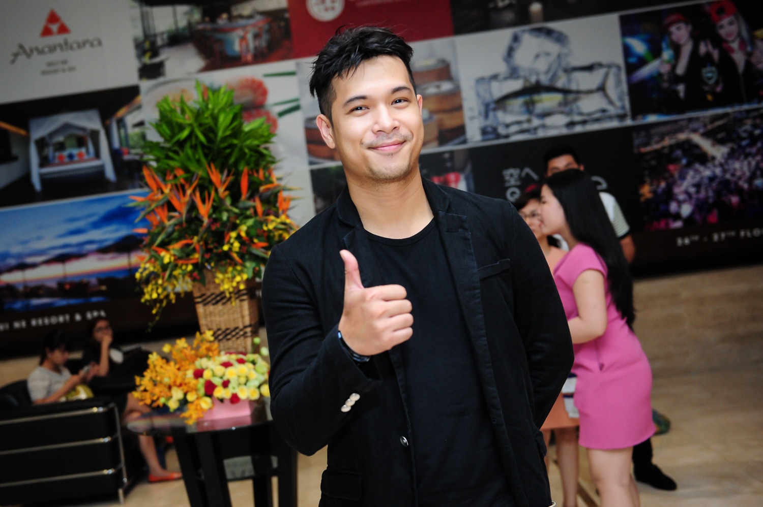 | Trương Thế Vinh phong độ trong trang phục màu đen. Anh một mình đến dự tiệc. |
