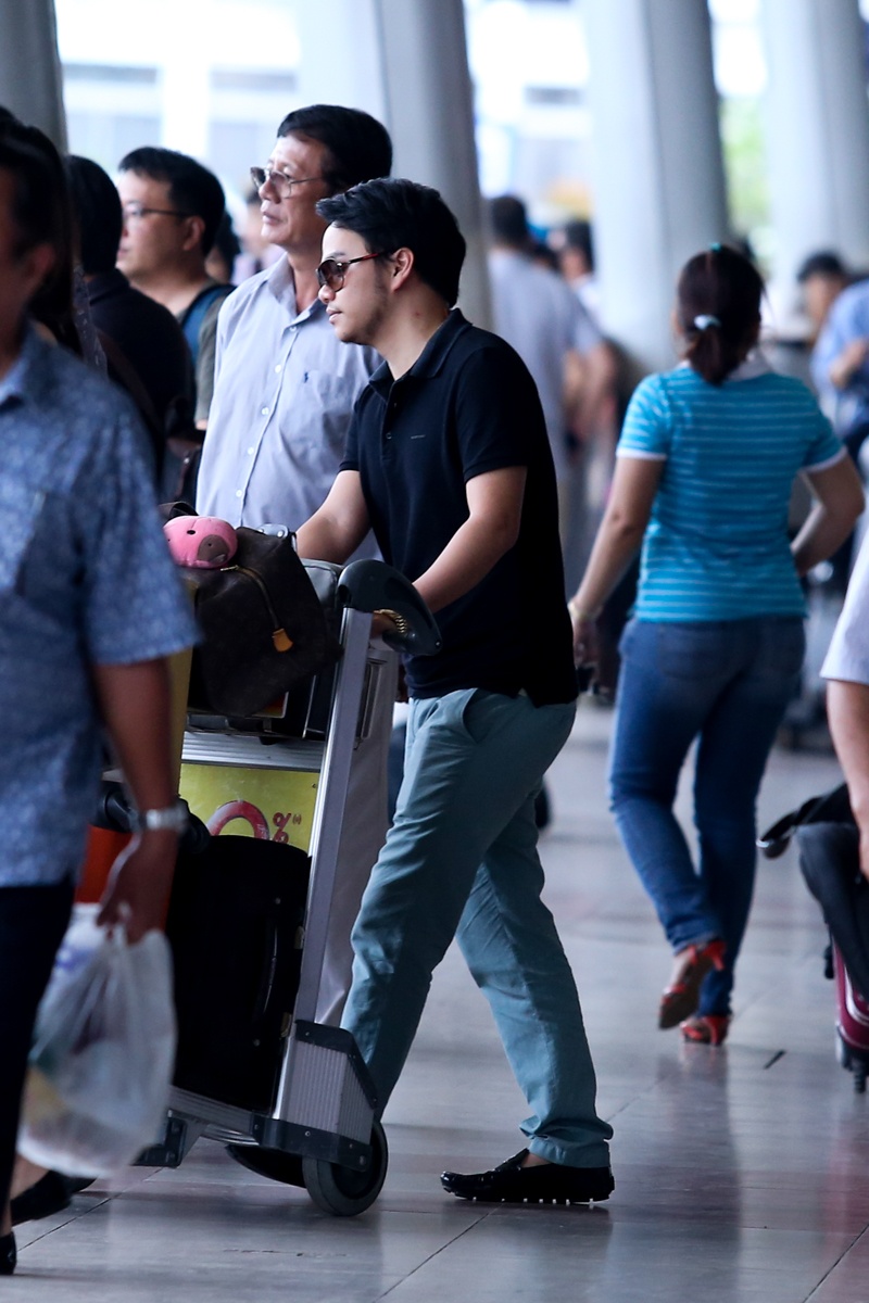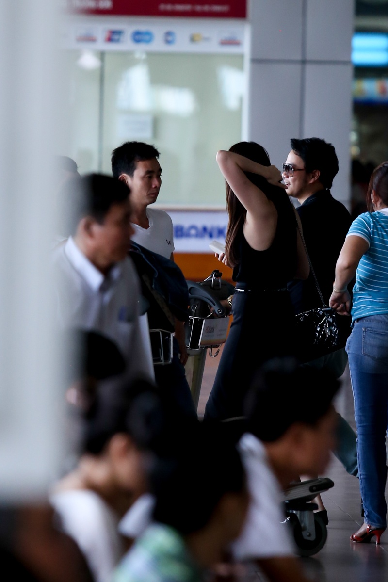 Bạn trai của người đẹp đã theo chân cô từ Hà Nội vào TP.HCM trong chuyến bay chiều 28/9. Anh luôn kề cận để giúp đỡ bạn gái khi cần thiết.
