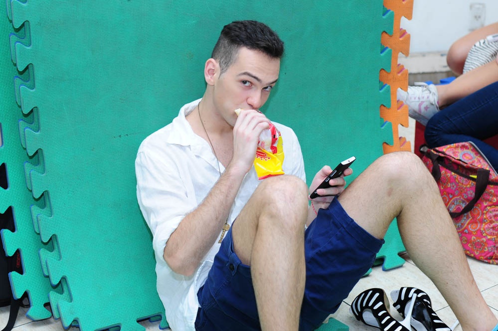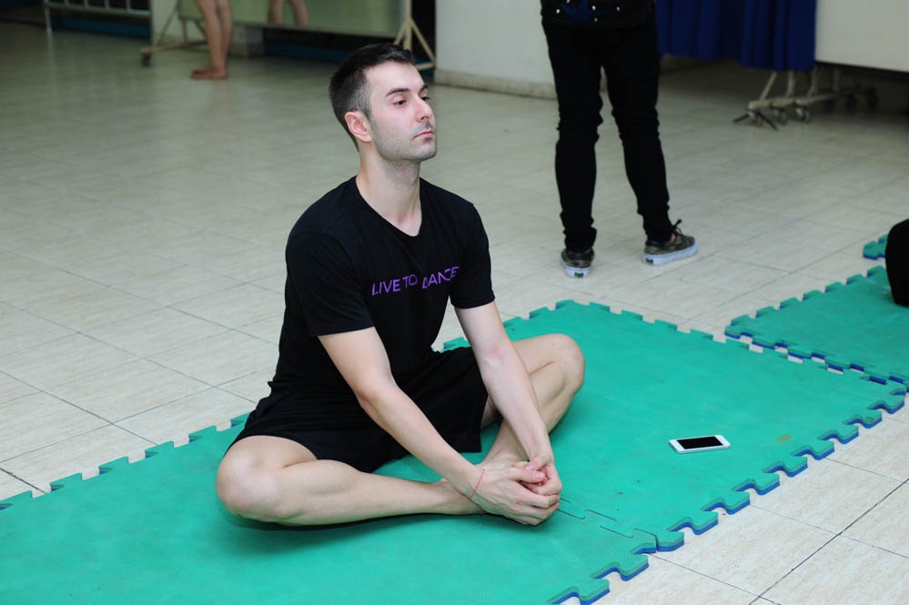 | Atanas - bạn nhảy của Ốc Thanh Vân - tranh thủ ngồi thiền trước giờ thi. |