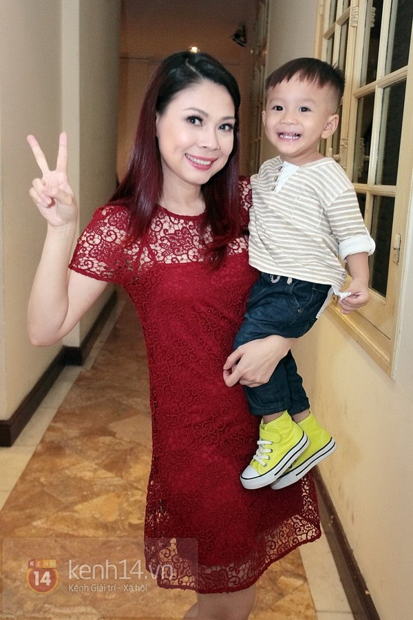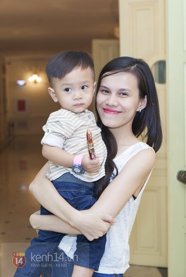 | Bé Jacky Minh Trí cười cười khi chụp hình với mẹ Thanh Thảo. |