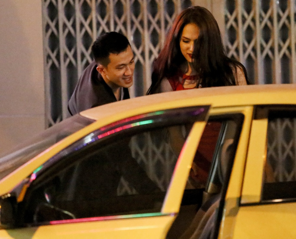 | Bạn trai thể hiện sự ga lăng khi mở cửa xe cho Hương Giang. Cô và Criss nảy sinh tình cảm từ khi cùng tham gia chương trình Cuộc đua kỳ thú 2014. Dù Criss định cư ở Canada song tình yêu của Giang - Criss vẫn mặn nồng. |