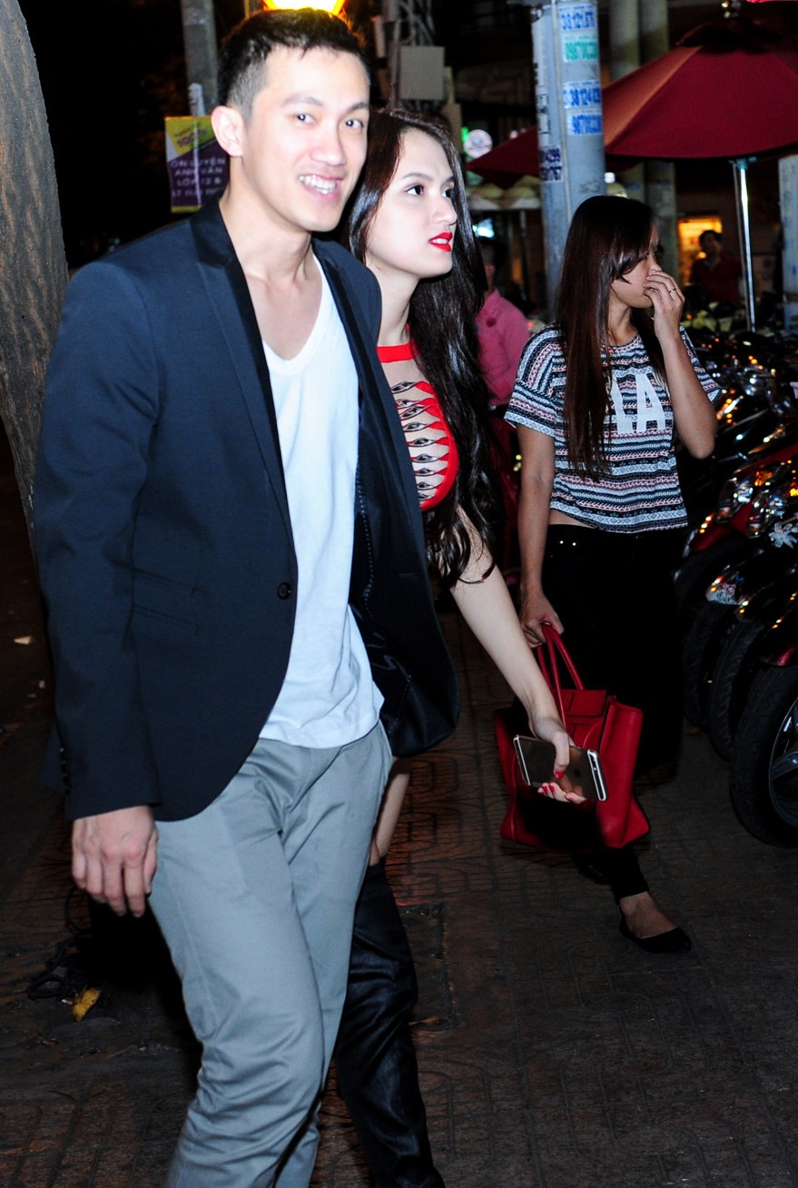 Người đẹp mặc bộ jumpsuit ngắn nổi bật với những đường xẻ hở táo bạo khi đi diễn cùng người yêu. Sau một thời gian xa cách, Criss đã sắp xếp công việc tại Canada để trở về Việt Nam sống cùng Hương Giang.