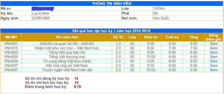 Măc dù việc học tiếng Việt luôn là trở ngại lớn đối với tất cả sinh viên nước ngoài nhưng Hari Won luôn đạt điểm cao nhất lớp ở những môn từ vựng, cơ sở văn hóa hay đại cương văn hóa Việt Nam….