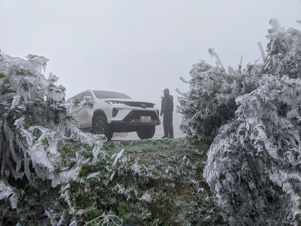 | Sáng 21/2, băng giá tiếp tục xuất hiện trên đỉnh Mẫu Sơn (Lạng Sơn). |
