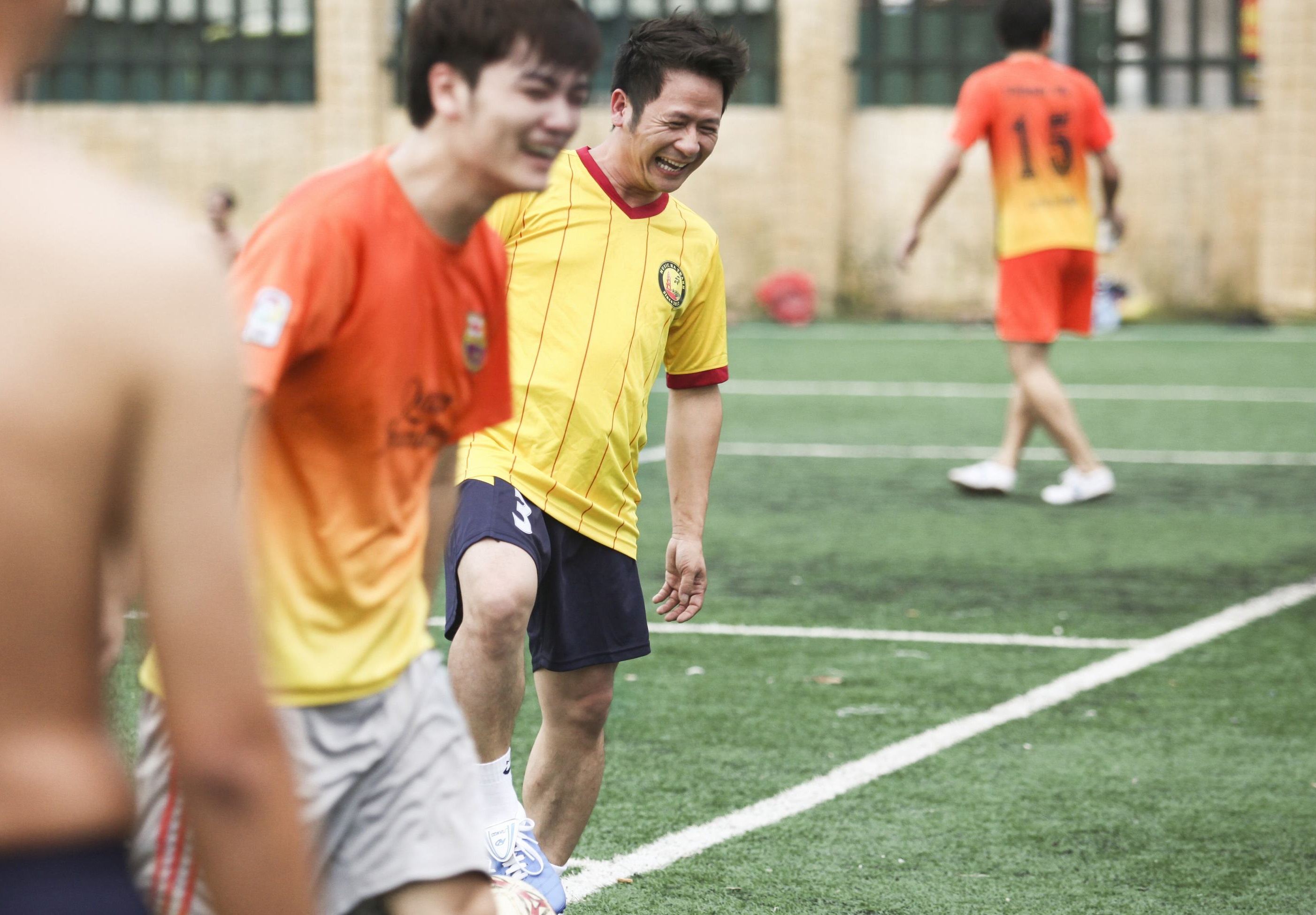 | Tuấn Hưng - người em thân thiết của Bằng Kiều - cũng góp mặt trong trận bóng chiều 19/9 vừa qua dù chiều 20/9 anh đã phải có mặt ở Sài Gòn để chuẩn bị cho buổi offline cùng người hâm mộ trước liveshow. Điểm chung của các thành viên nhóm Quả Dưa Hấu chính là niềm đam mê dành cho môn thể thao vua bên cạnh tình yêu âm nhạc. Tuấn Hưng thậm chí còn có cả một đội bóng riêng, gồm các cộng sự trong công ty và anh em thân thiết. |