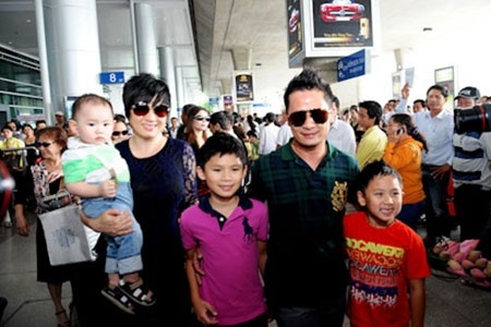 | Bằng Kiều khi còn hạnh phúc bên vợ và 3 cậu con trai. |