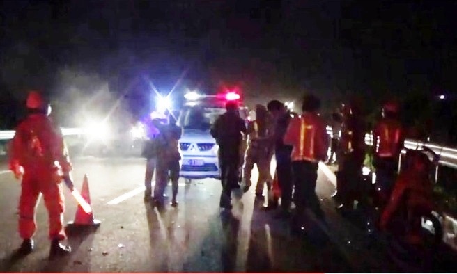 Đoạn đường xảy ra tai nạn không có đèn chiếu sáng hai bên trong khi lưu lượng xe đông, chạy tốc độ cao khiến việc xử lý hiện trường gặp khó khăn.