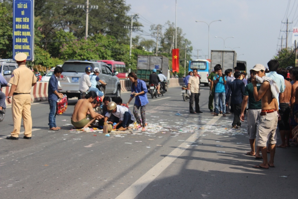 Nạn nhân ngã xuống đường, chưa kịp đứng dậy thì bị xe tải biển số 51C do tài xế Trần Bá Anh (27 tuổi, quê Nghệ An) điều khiển, lưu thông cùng chiều với chiếc xe máy, lao tới cán tử vong.