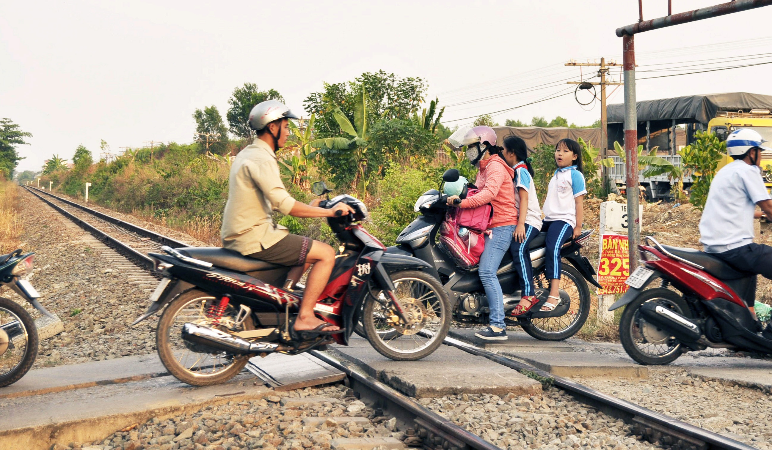 Tại đây, dù được nhà chức trách lắp hệ thống tự động cảnh báo tàu, nhưng nhiều người đi xe đạp, xe máy vẫn bất chấp, vượt qua đường sắt trong khi tàu đang tiến lại gần.