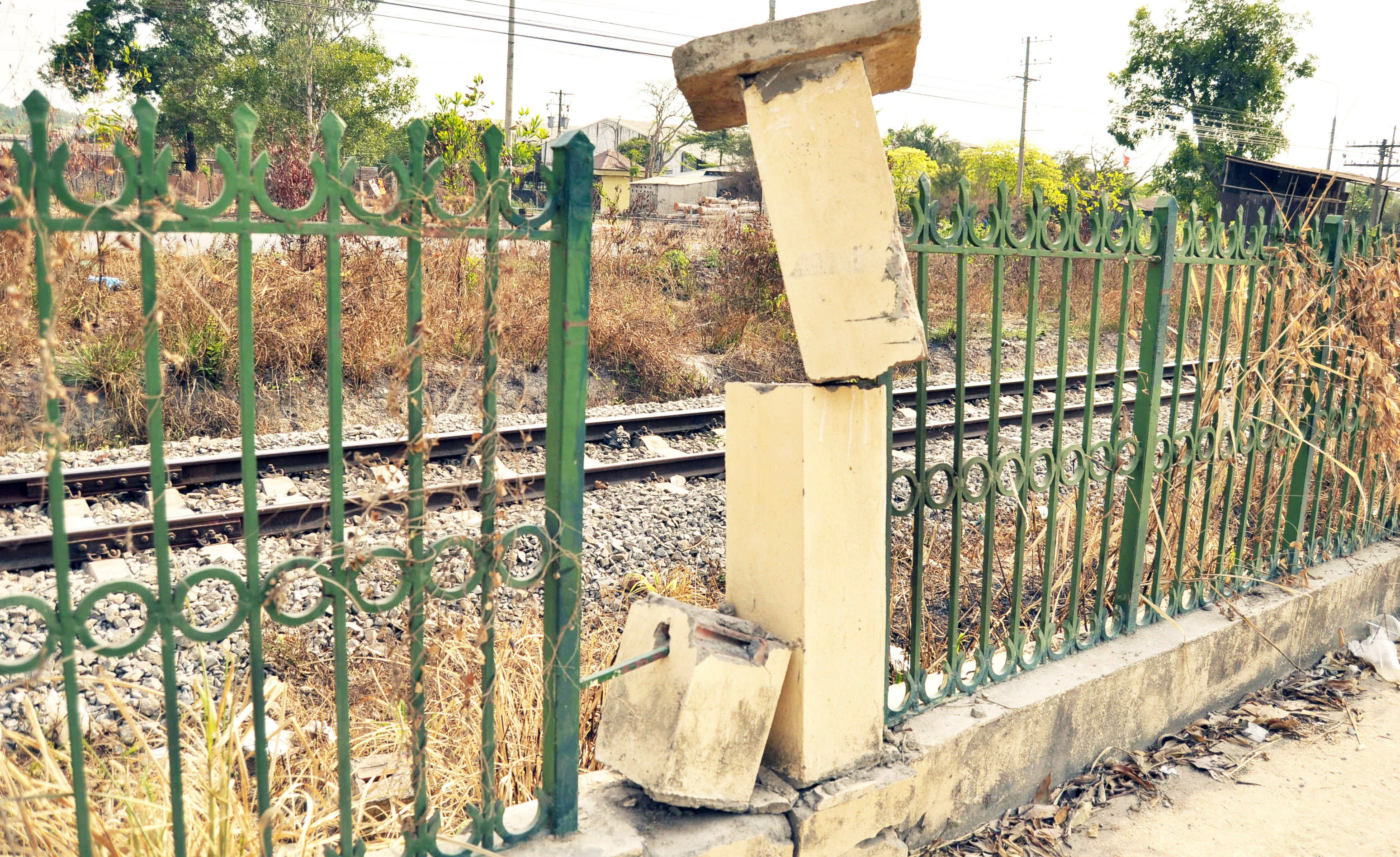 Không chỉ băng qua khi tàu đến gần, các hộ dân sống 2 bên đường sắt ở Đồng Nai còn tự ý đập phá tường gạch tường rào ngăn cách để tạo lối đi.