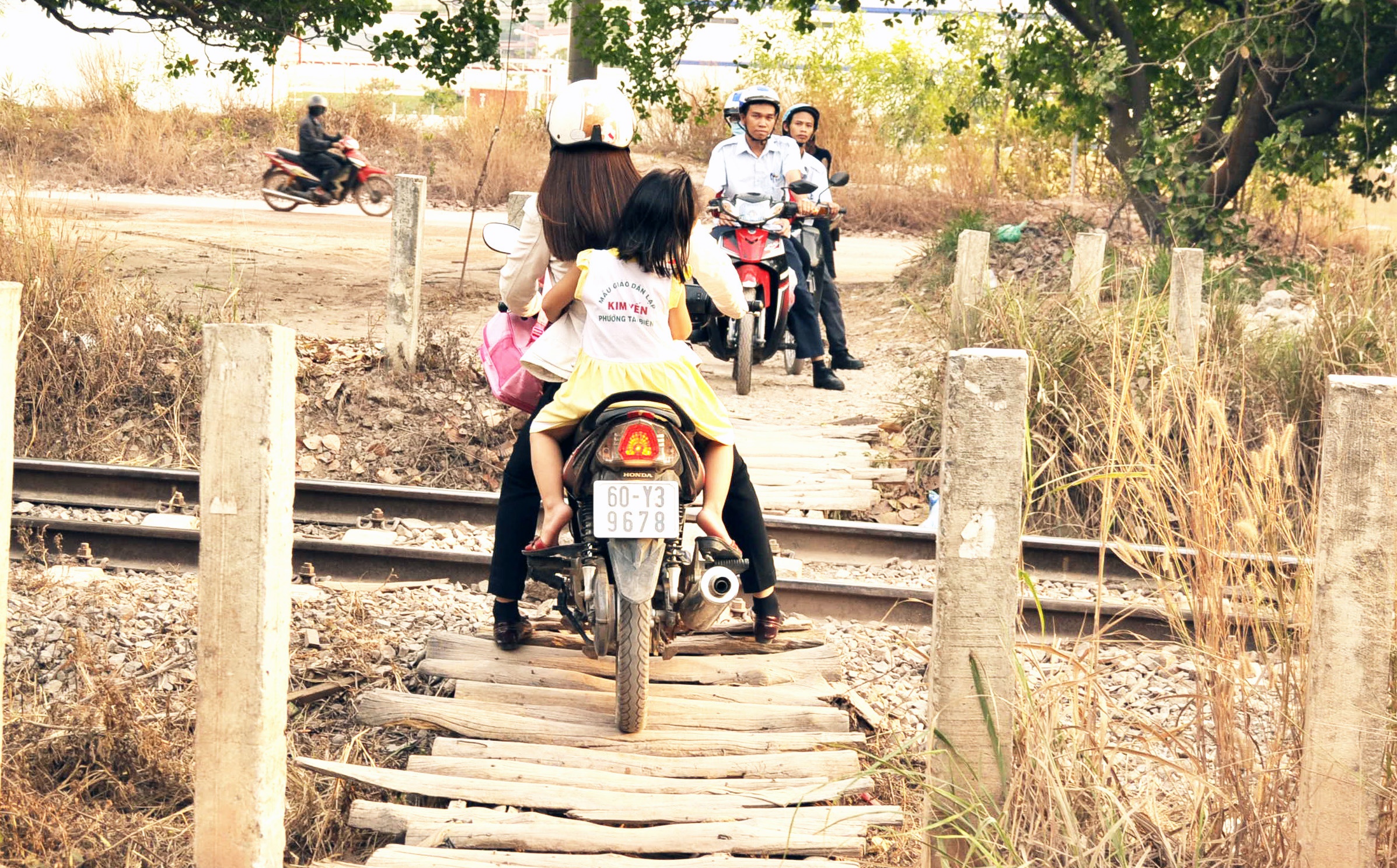 Tại phường Tân Hiệp, ngành chức năng mở đường ngang dân sinh, nhưng không có người cảnh giới và trạm gác. Hàng ngày, người dân khi đi qua phải nhìn hai phía xem có tàu chạy tới hay không.