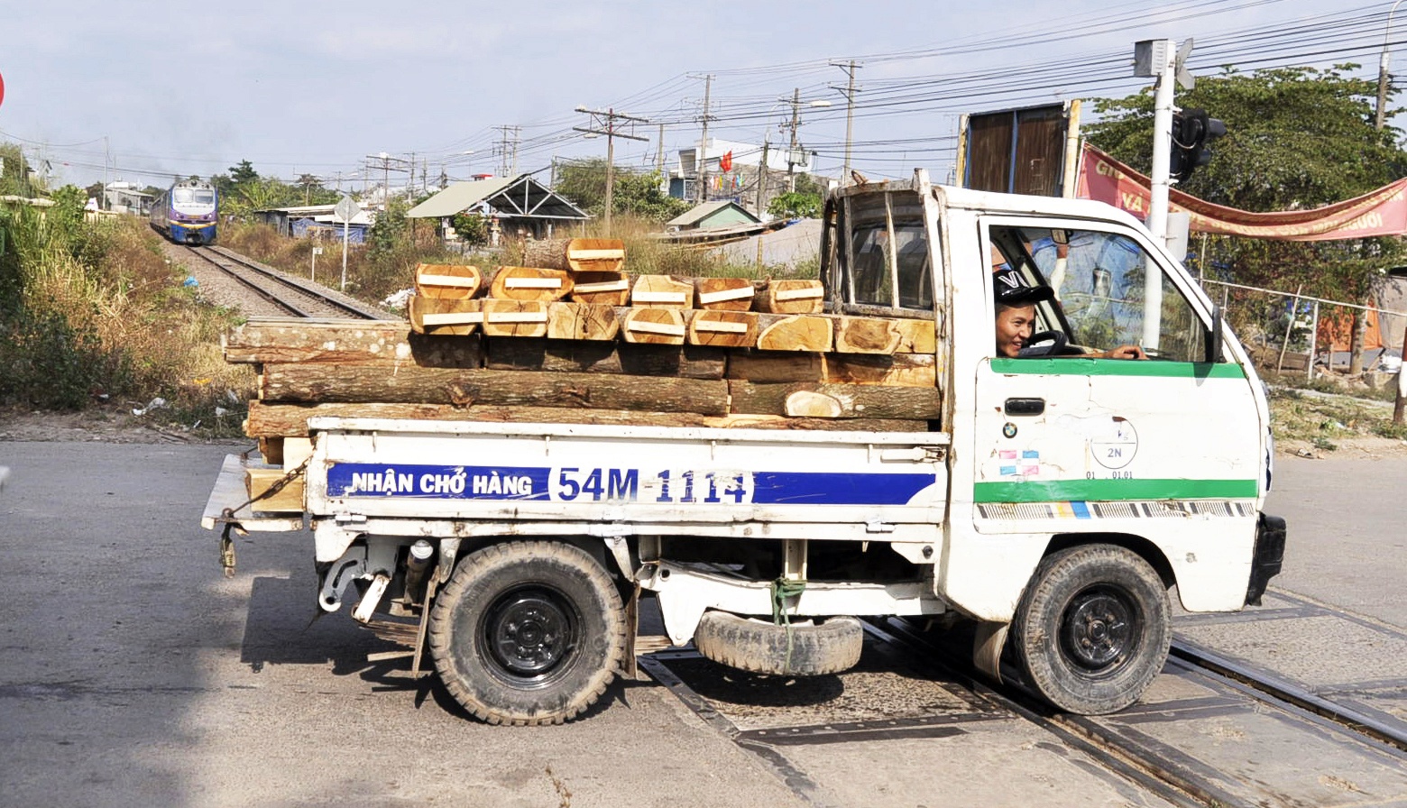 Chiếc xe chở gỗ băng qua đường sắt, dù tàu hỏa đang lao tới với khoảng cách vài chục mét. Một người dân tại khu vực này cho biết: "Nhiều người coi thường tính mạng, dù thấy tàu hỏa đang lao tới với tốc độ cao, nhưng vẫn cố tình nhấn ga chạy qua. May mắn là chưa có vụ tai nạn đáng tiếc nào xảy ra".