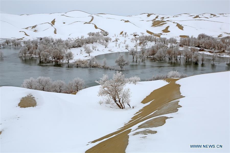 | Tuyết phủ kín thành phố Ngọc Môn, tỉnh Cam Túc.