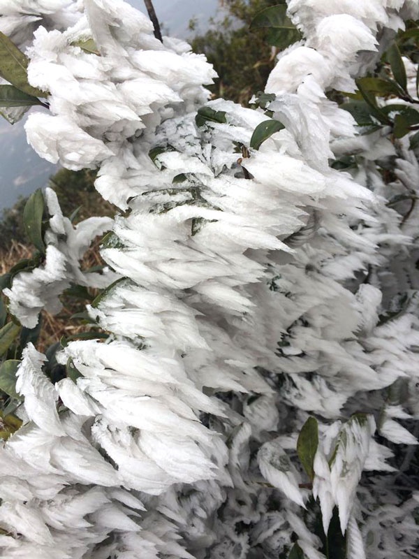 Sáng 11/2 nhiệt độ thấp nhất ở Mẫu Sơn (Lạng Sơn) xuống còn -3 độ C nên băng tuyết đã xuất hiện trên các cành cây. Cảnh tượng hiếm thấy này được nhiều người ghi lại.