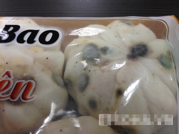 | Gói bánh bao chị Q. mua chưa đến hạn đã mốc đen. |