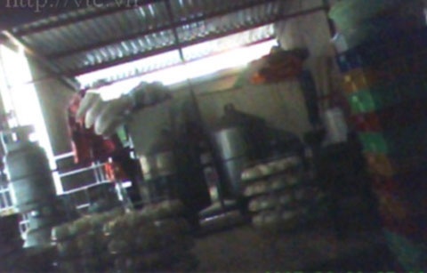 Những bó miến, mộc nhĩ dùng để làm nhân bánh vứt lăn lóc trên nền nhà. Không gian khá chật chội với lỉnh kỉnh những bình xăng, 2 chiếc nồi hấp và hàng chục khay đựng bánh bao xếp chồng chất lên nhau, bày xung quanh căn gác xép nhỏ, hẹp. Những chiếc máy đảo bột đen kịt vì han gỉ, ít được lau rửa nên hôi nồng mùi bột lên men. Những khay đựng bánh bao mới ra lò thì đã cáu bẩn, đầy cặn bột và bụi bặm bám quanh.