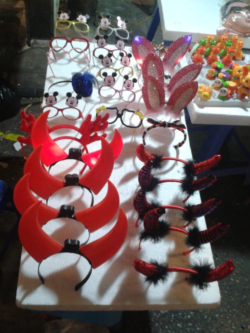 Tết trung thu truyền thống với toàn mặt nạ quỷ, Psy, hóa trang, gọng kính, súng phun bong bóng xà phòng, bờm tai thỏ… xuất xứ Trung Quốc giá từ 20 nghìn đến cả trăm nghìn đồng, chiếm lĩnh, áp đảo thị trường đồ chơi tại Hà Nội.