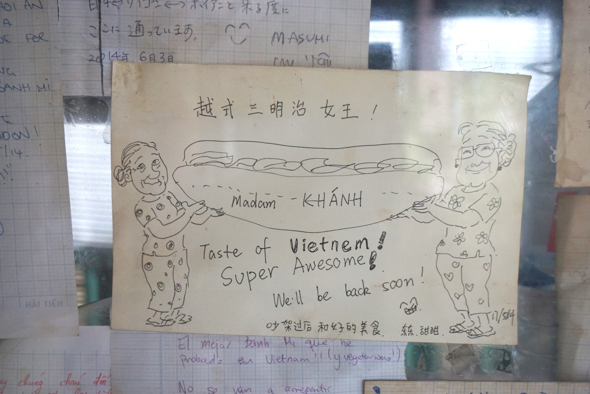 “Bánh mì Phượng giá 30.000 đồng/chiếc, rất ngon. Bánh mì của Madame Khanh 20.000 đồng, thơm và có vị rất tuyệt, nhất là phần pate. Nhưng tôi thích hơn cả là bà Khánh chủ quán. Bà cụ thật sự thân thiện và tốt bụng. Cách bà chiều lòng khách, nói chuyện với khách, nắm tay chúng tôi cùng chụp hình khiến tôi cảm giác như được ở nhà. 20.000 đồng là quá rẻ cho một chiếc bánh tuyệt vời! Tôi chỉ thấy lạ vì quán nổi tiếng vậy mà người Hội An lại không biết”.