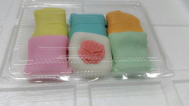 Bánh sầu riêng tươi lạnh có 6 màu khác nhau. Ảnh: NVCC. |