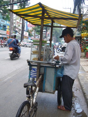 Bánh thủ công bày bán tràn lan ngoài đường, trước cổng trường học, bệnh viện với “công nghệ sản xuất” “siêu” nhanh và giá “siêu” rẻ. Dạo quanh các con đường TP.HCM như đường 3/2 (Q.10), đường Bình Thới(Q.11), đường Hồng Bàng (Q.5)…, dễ dàng bắt gặp các xe đẩy bán các loại bánh tiêu, bò, cam, chuối chiên… với giá chỉ từ 1.000-5.000đồng/cái. Quá trình chế biến mất vệ sinh, sản phẩm không bao bì, không hạn sử dụng là đặc điểm chung của những loại bánh thủ công này.
