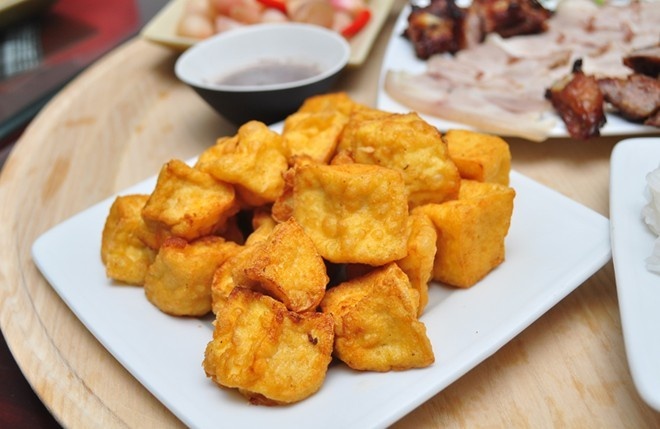 Quán còn nhiều thực đơn thú vị bởi cô chủ thường ngẫu hứng sáng tạo. Chẳng hạn, đi liền với khúc biến tấu bánh tráng thịt heo mâm còn có bún đậu mâm, tức là suất bún đậu bình dân cũng bày biện rất hoành tráng. Ngoài bún, đậu giòn, mắm tôm, rau dưa ăn kèm, còn có thêm thịt ba chỉ luộc, sườn sụn non nướng, hành muối giải ngấy. Mâm bún đậu này đủ cho 2 người bán với mức giá khoảng 80.000 đồng, cũng là bữa trưa lý tưởng cho các cặp đôi.