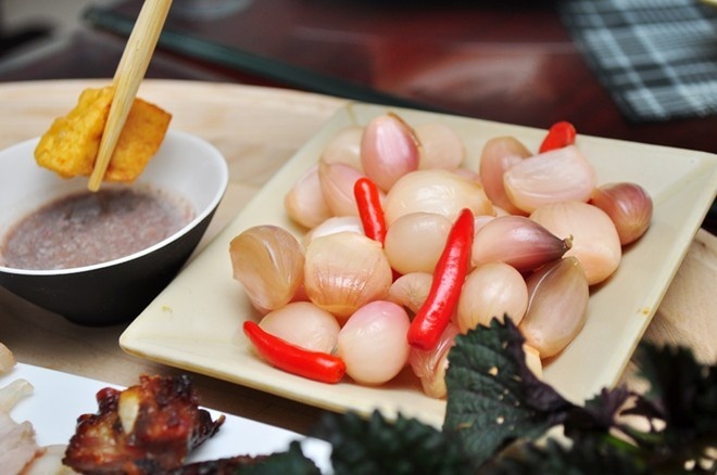 | Ngoài dưa chuột còn có hành muối giải ngấy. |