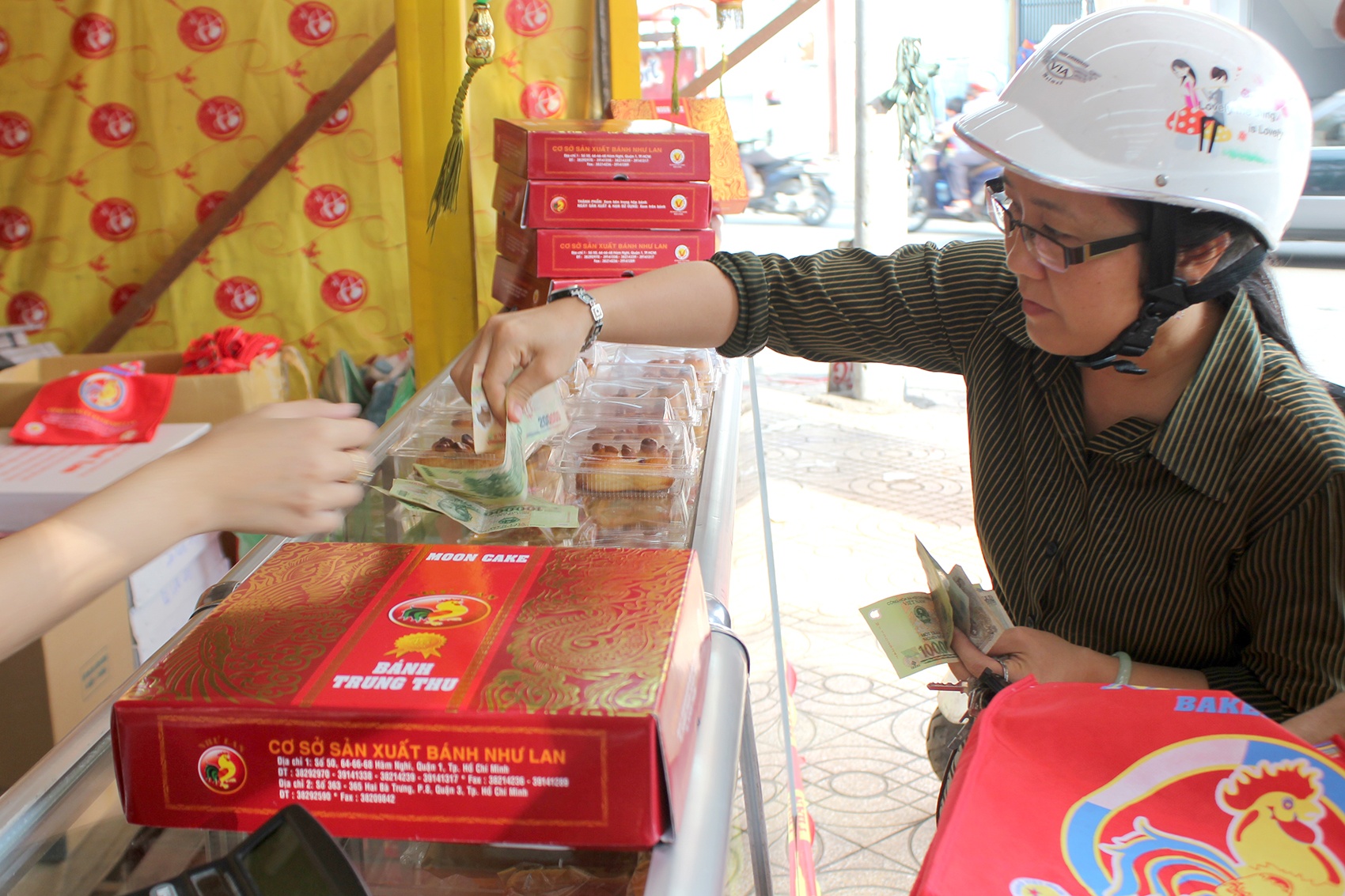 | Chị Minh, ở quận 5 mua bánh về đi biếu cho biết, cửa hàng bánh trung thu mở ở khắp nơi, nhưng mỗi nơi lại có giá và chương trình khuyến mãi rất khác nhau. "Có nơi giảm giá, mua 1 tặng 1, có nơi lại tặng lồng đèn hoặc tặng bánh khác... nên trước khi mua tôi đã đi xem mẫu và tham khảo giá ở nhiều nơi rồi mới quyết định", chị nói. |